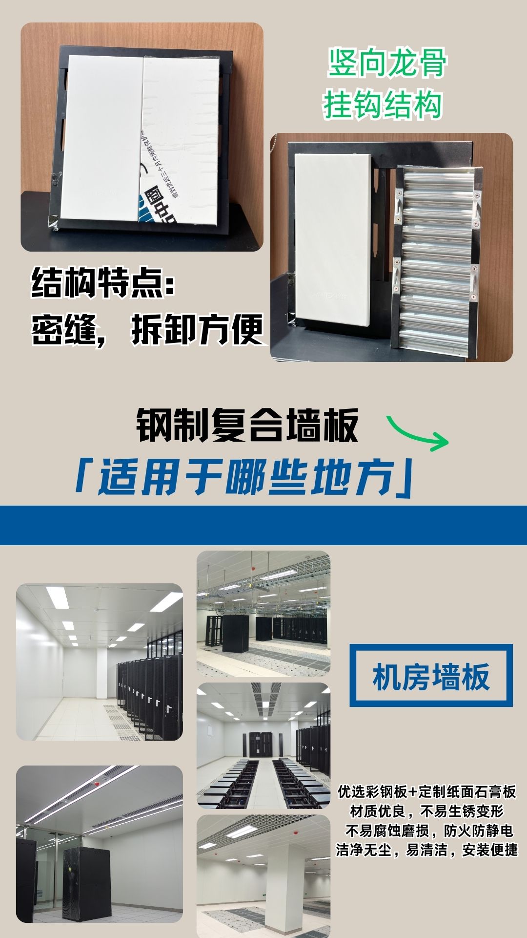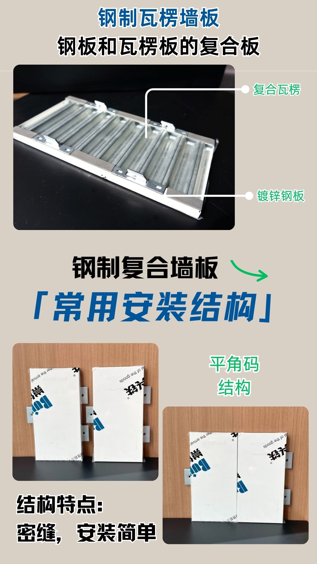 介紹:鋼制墻板是一種表面材為鍍鋅鋼板,背面復合石膏板、鋁蜂窩或瓦楞板成型的新型材料,可采用平角碼或卡扣插入式的安裝方式。